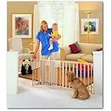 North States Extra Wide Swing Gate Large openings are often difficult to close off.The North States Extra Wide Swing Gate offers parents an affordable choice for closing off a large area for either a child or a pet.The Extra Wide allows children and pets to be confined to an area where mom or dad will have total supervision.It extends up to an amazing 8.5 feet (103 in.) and stands at 27 inches high.However, unlike other North States gates it does not work with small areas at all.The s